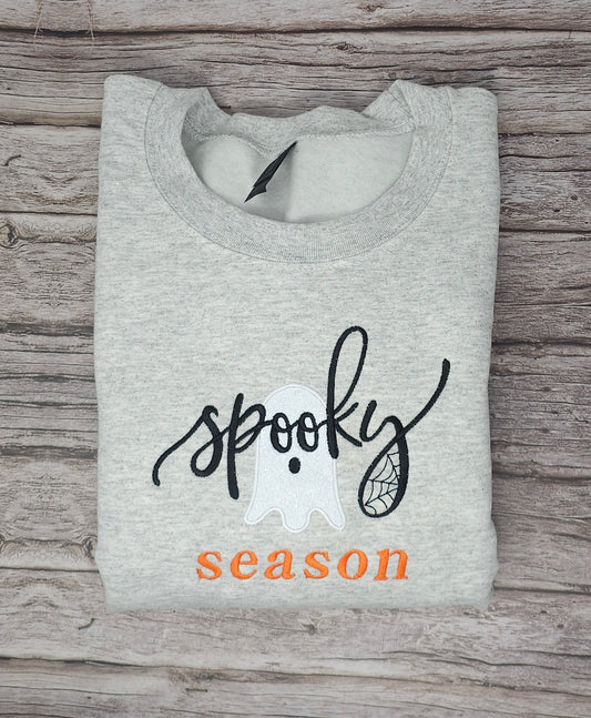 Spooky Season Embroidered Sweatshirt – Cozy Halloween Ghost Applique with Glitter Accents