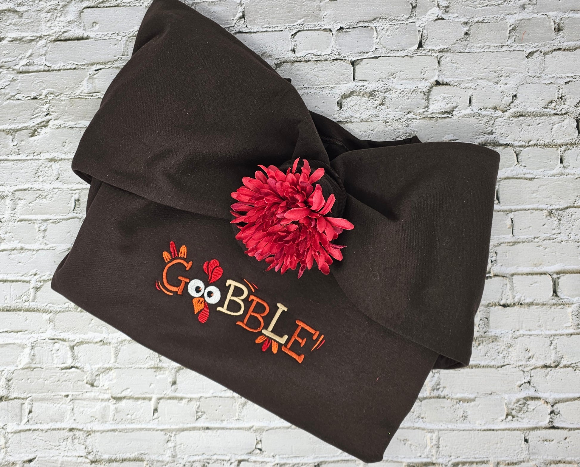 Celebrate Thanksgiving in style with this soft, warm, and cozy embroidered sweatshirt featuring the festive word “Gobble” stitched in crisp, vibrant detail. Whether you’re hosting the big family dinner, cheering on the holiday parade, or simply soaking in the fall vibes, this sweatshirt keeps you comfortable and cute all season long.