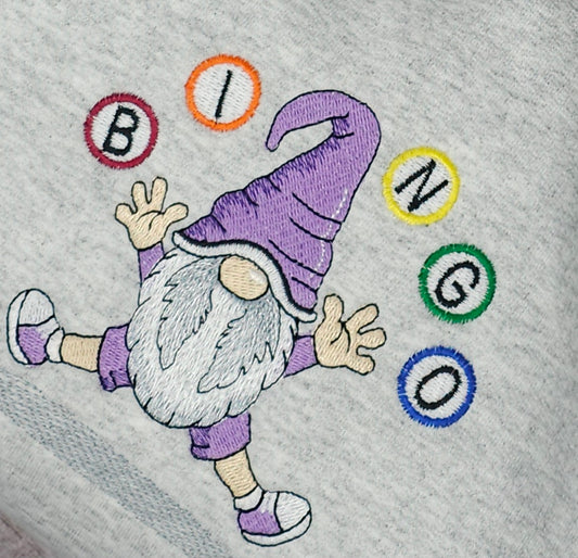 Whimsical Bingo Gnome Embroidered Sweatshirt | Cozy Gift for Bingo Lovers