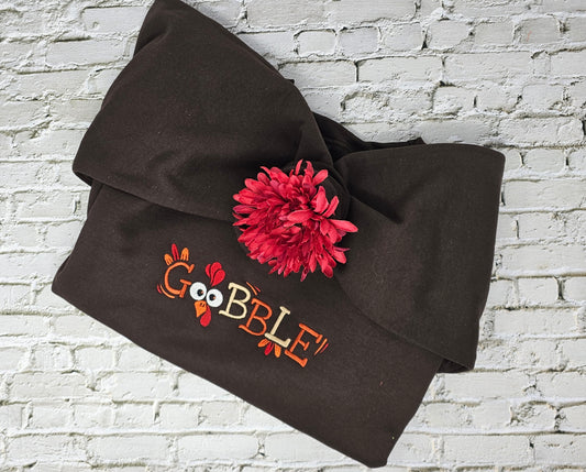 Cozy “Gobble” Thanksgiving Embroidered Sweatshirt – Cute Turkey Face Fall Crewneck for Women